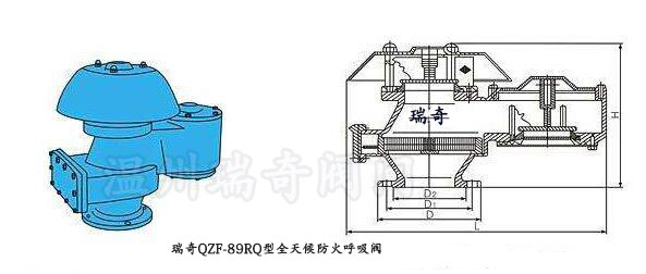 QZF-89RQ瑞奇全天候防火呼吸閥主要是用來(lái)滿(mǎn)足儲(chǔ)罐大小呼吸的通氣與阻火要求安裝在儲(chǔ)存甲、乙、丙類(lèi)液體的儲(chǔ)罐頂上,確保儲(chǔ)罐在超壓時(shí)免遭破壞,同時(shí)減小儲(chǔ)罐內(nèi)介質(zhì)的蒸發(fā)損耗。是集阻火器與呼吸閥為一體。它是石化儲(chǔ)罐必備安全設(shè)備,其最大優(yōu)點(diǎn)是阻火呼吸性能好、重量輕、密封性能好、泄漏量小、耐腐蝕維修方便。