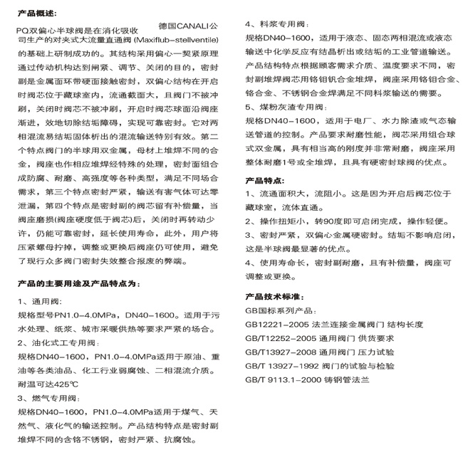 半球閥產品按用途分為:通用閥、管線閥、料漿專用閥、燃氣專用閥、石油化工專用閥、煤粉噴吹專用閥六大系列。傳動方式有手動、氣動、電動三種,八個壓力等級(PN0.25~10.0Mpa)數百個規格(40~1000)的半球閥產品。在石油、化工、冶金、電力、燃氣等行業是閘閥、截止閥、Y型閥、球閥的更新換代產品。目前已暢銷在鋼鐵行業的煤粉噴吹,氧化鋁行業的礦漿、母液和氧化鋁粉輸送,電力行業的水力(或干)除灰,石化行業,燃氣行業等場合。